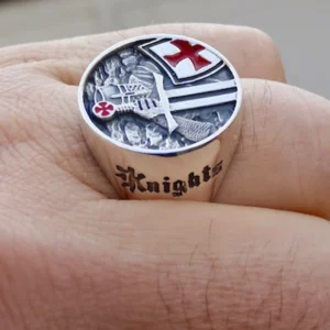 La conception unique de cette bague en fait un véritable bijou de collection pour les amateurs d’histoire et de symbolique chevaleresque. Le design robuste et le matériau durable en acier inoxydable en font un accessoire qui saura traverser le temps avec élégance.