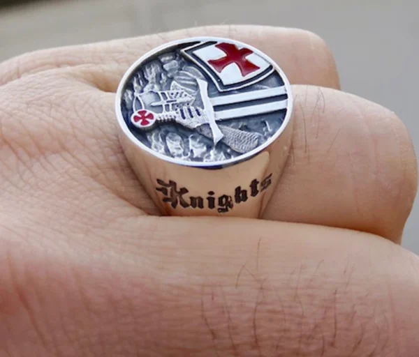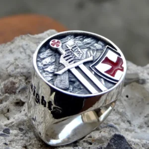 Cette bague sceau templier est un accessoire de mode masculin époustouflant qui saura attirer tous les regards. Avec son motif chevalier avec épée et armure, ainsi que sa croix rouge emblématique, cette bague en acier inoxydable incarne l’esprit des vaillants chevaliers templiers.