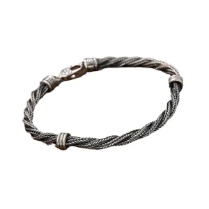 Ce bracelet cordon argent homme se distingue par son tressage fin qui rappelle le savoir-faire artisanal d’antan, tout en offrant un style contemporain. Sa patine mate, volontairement vieillie, révèle une profondeur et une personnalité uniques, parfaites pour les hommes qui aiment se démarquer tout en restant élégants.
