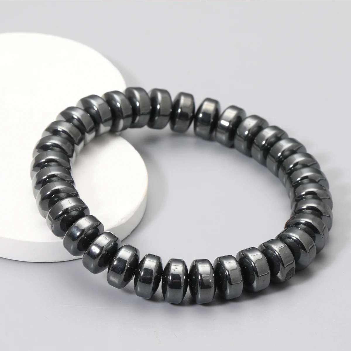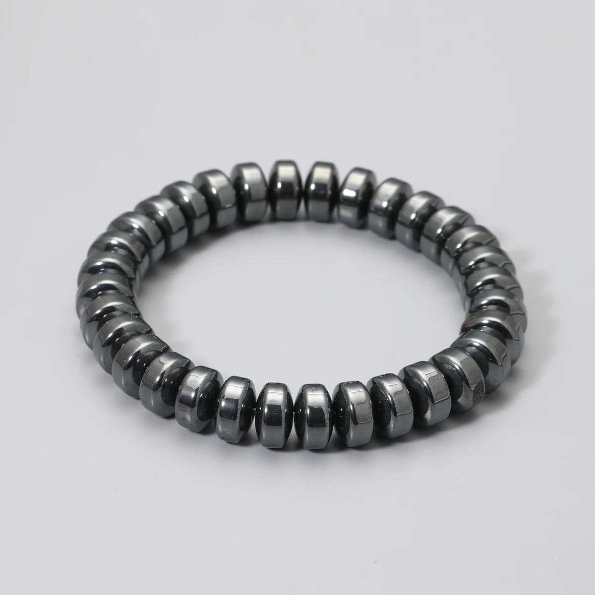 Fabriqué avec un fil en silicone élastique haute résistance, ce bracelet hématite aimanté s’ajuste parfaitement à votre poignet sans jamais serrer. Ses perles plates, finement polies à la main, offrent une texture lisse et agréable au toucher, garantissant un confort optimal, même sous une manche. Avec son style sobre et contemporain, il s’adapte aisément à toutes les occasions, sublimant aussi bien une tenue décontractée que chic. Exprimez votre personnalité avec ce bracelet pour homme en hématite magnétique conçu pour ceux qui apprécient l’élégance minérale.