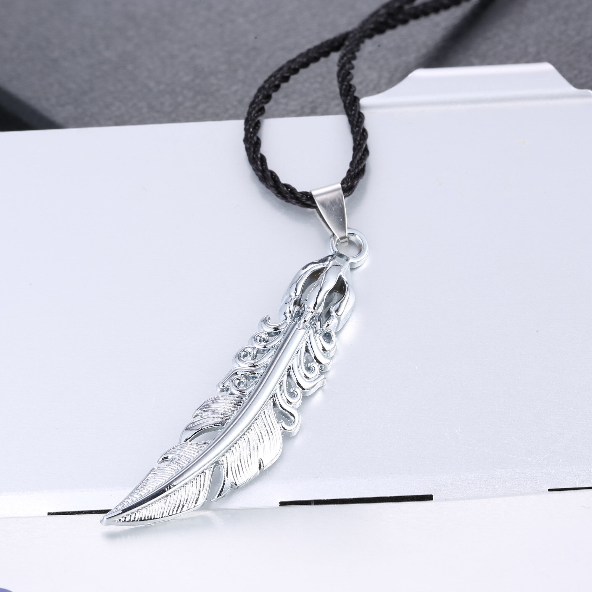 Caractéristiques du collier pour homme avec un pendentif plume